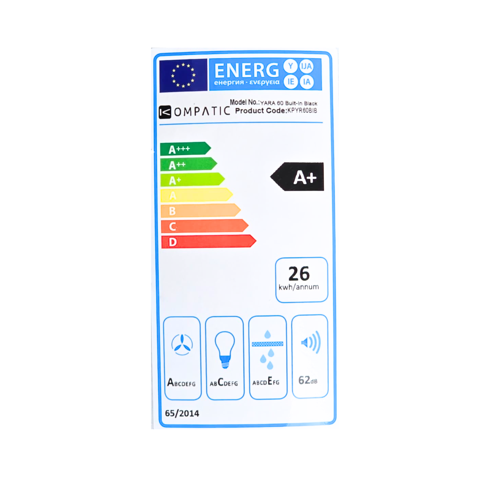 YARA 60 KPYR60BIB, matte black, built-in cooker hood, combines sleek design with cutting-edge performance, featuring a heated glass panel with no-drip function, adjustable lighting intensity and temperature, continuous air cleaning, quick timer with boost and super-boost modes, and a quiet, energy-efficient brushless motor-making it the perfect balance of elegance and functionality for any modern kitchen.